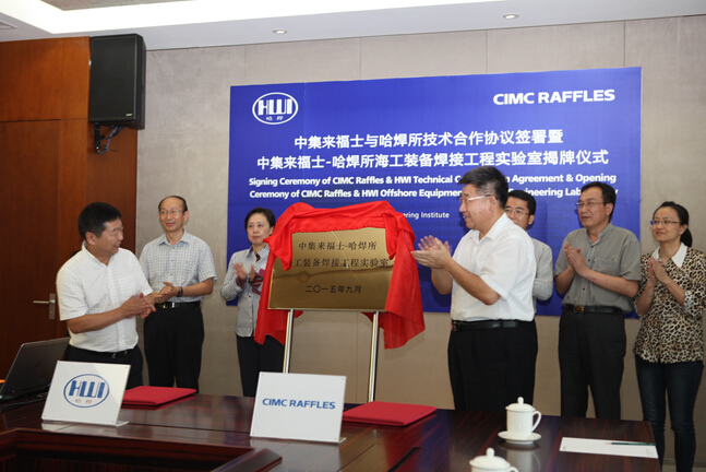 參觀后,雙方進(jìn)行了深入的交流洽談,針對(duì)煙臺(tái)中集來(lái)福士的技術(shù)亟需,雙方經(jīng)篩選初步擬定了兩個(gè)第一期合作課題,確定項(xiàng)目組成員編寫(xiě)計(jì)劃任務(wù)書(shū),計(jì)劃組織申報(bào)省市科技攻關(guān)項(xiàng)目。隨后舉行了煙臺(tái)中集來(lái)福士海洋工程有限公司與哈爾濱焊接研究所共建的