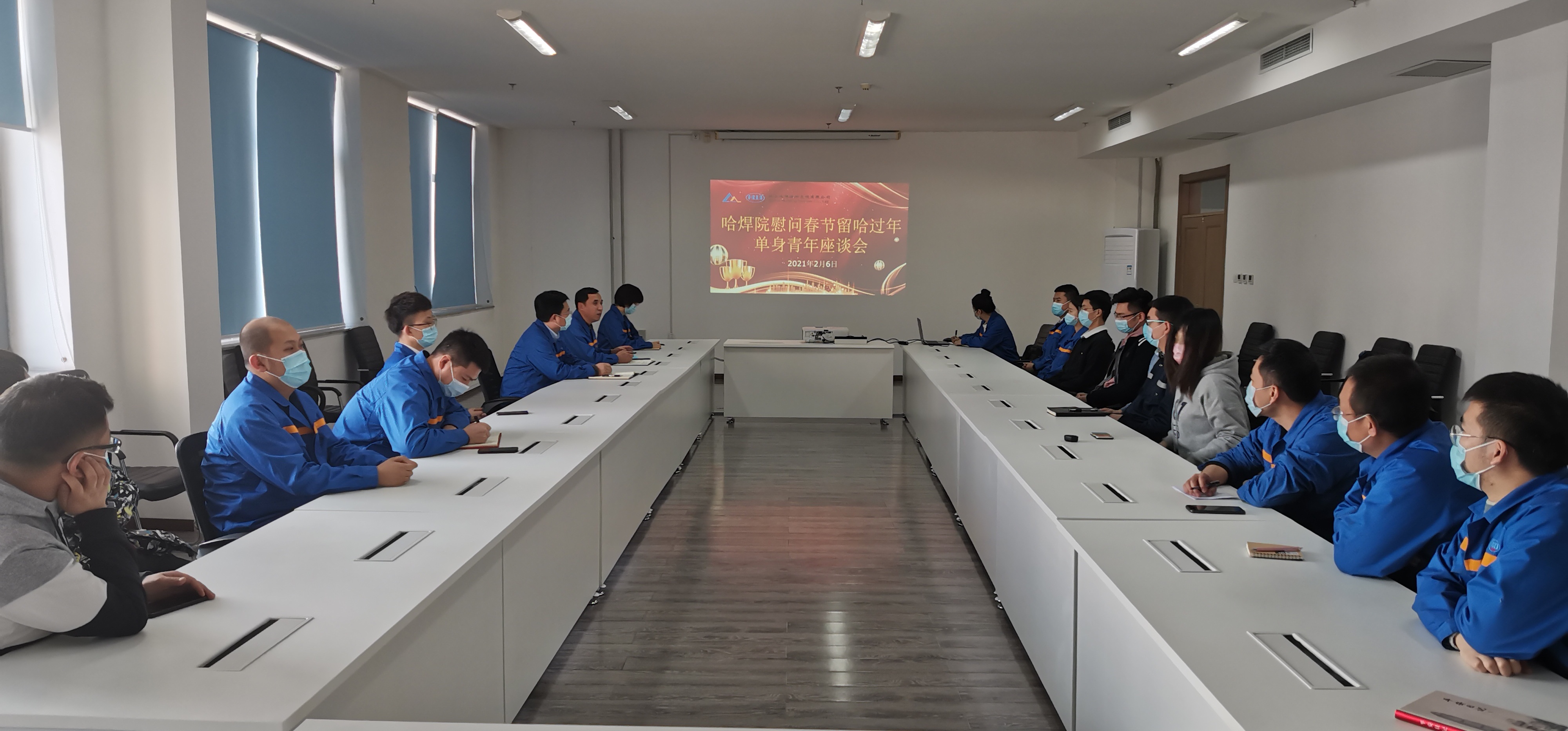 春節(jié)將至,為貫徹落實(shí)黑龍江省委、省政府《關(guān)于切實(shí)做好人民群眾就地過年服務(wù)保障工作的通知》要求,把黨的關(guān)懷和工會組織的溫暖及時送到廣大職工群眾的心坎上,2月6日,哈焊院組織召開留哈過年的單身公寓、研究生公寓和人才公寓青年職工座談會,為響應(yīng)疫情防控政策就地過年單身職工送去慰問。哈焊院黨委書記、董事長楊玉亭,黨委副書記、紀(jì)委書記、工會主席儲繼君出席座談會。