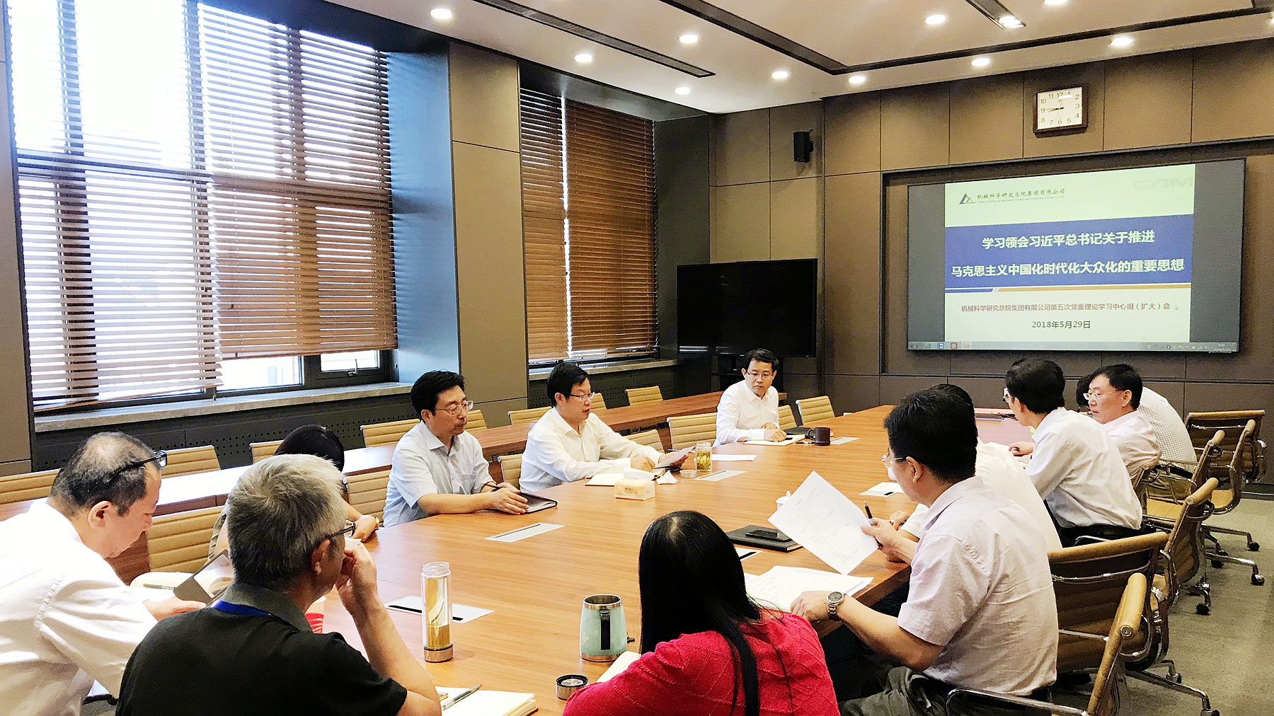 5月29日,機械總院集團召開2018年第五次黨委理論學習中心組(擴大)會議,學習領會習近平總書記關于推進馬克思主義中國化時代化大眾化的重要思想。機械總院集團黨委理論學習中心組成員參加會議,總部各部門負責人列席會議。會議由黨委書記、董事長、總經理王德成主持。