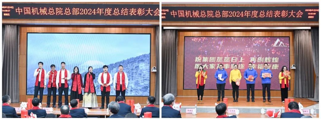 大會現(xiàn)場氣氛喜慶熱烈?!对鲂刨x能 攜手同行》短片,回顧2024年豐碩成果、展望2025年發(fā)展前景。各部門以視頻方式送來新春祝福。大會向光榮在院30年、20年、10年的干部職工頒發(fā)紀(jì)念章;對涌現(xiàn)出的先進(jìn)集體和優(yōu)秀個人進(jìn)行了表彰。集團(tuán)領(lǐng)導(dǎo)為獲獎代表頒獎,獲獎代表感言分享成長喜悅、表達(dá)美好祝福。